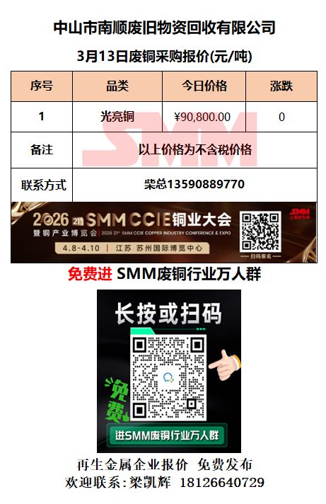 3月13日中山南顺 废铜采购报价