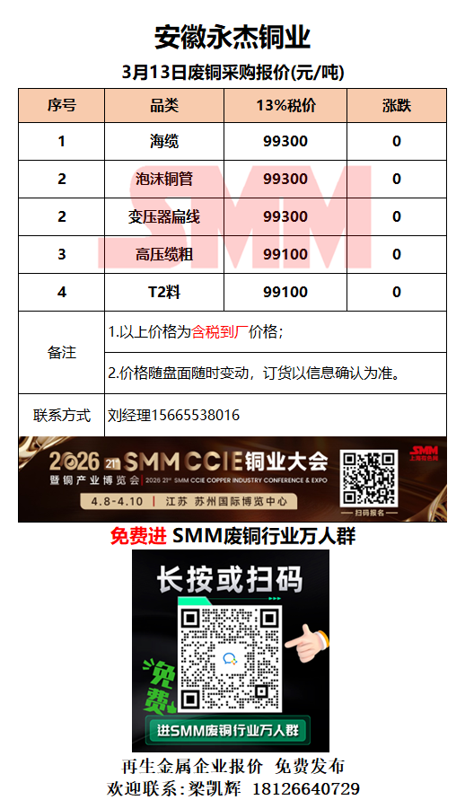 3月13日安徽永杰 废铜采购报价