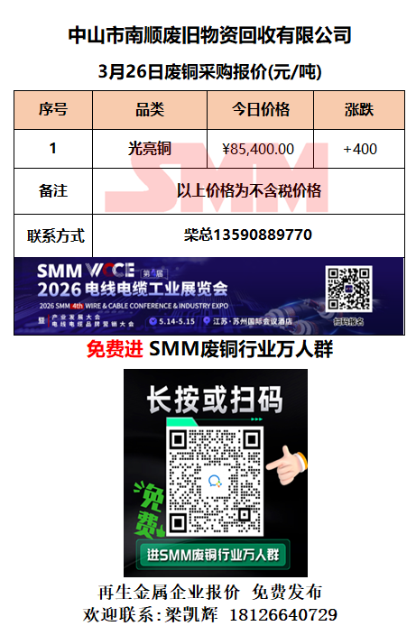 3月26日中山南顺 废铜采购报价