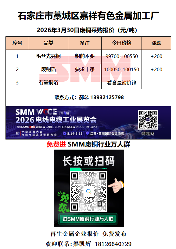 3月30日高诺(衡阳)铜业 废铜采购报价