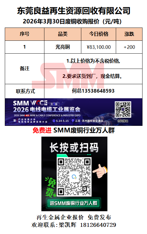 3月30日东莞良益 废铜采购报价