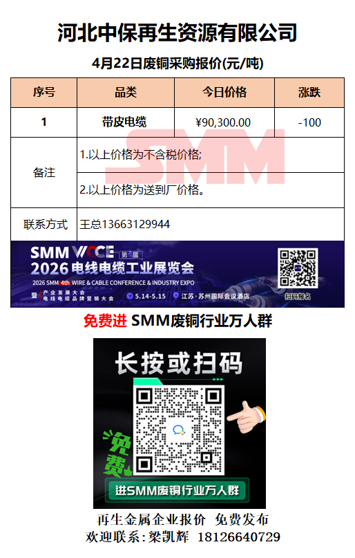 4月22日河北中保 废铜采购报价
