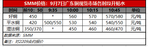 9月7日广东铜现货市场各时段升贴水(第四时段10:45)【SMM价格】