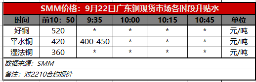 9月22日广东铜现货市场各时段升贴水(第一时段9:35)【SMM价格】