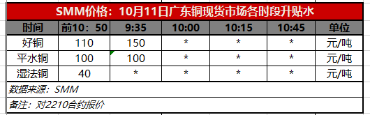 10月11日广东铜现货市场各时段升贴水(第一时段9:35)【SMM价格】