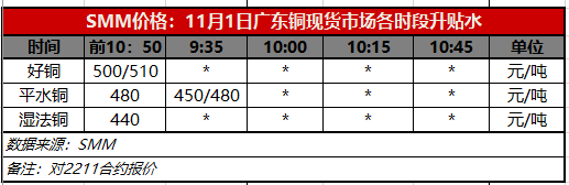 11月1日广东铜现货市场各时段升贴水(第一时段9:35)【SMM价格】