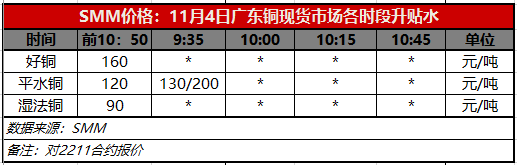 11月4日广东铜现货市场各时段升贴水(第一时段9:35)【SMM价格】