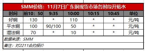 11月7日广东铜现货市场各时段升贴水(第二时段10:00)【SMM价格】