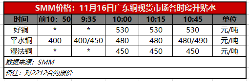 11月16日广东铜现货市场各时段升贴水(第四时段10:45)【SMM价格】