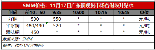 11月17日广东铜现货市场各时段升贴水(第一时段9:35)【SMM价格】