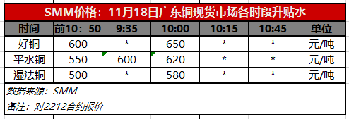 11月18日广东铜现货市场各时段升贴水(第二时段10:00)【SMM价格】