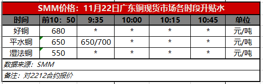 11月22日广东铜现货市场各时段升贴水(第一时段9:35)【SMM价格】