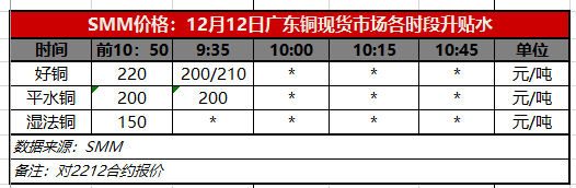 12月12日广东铜现货市场各时段升贴水(第一时段9:35)【SMM价格】