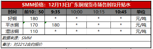 12月13日广东铜现货市场各时段升贴水(第一时段9:35)【SMM价格】