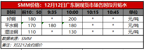 12月13日广东铜现货市场各时段升贴水(第二时段10:00)【SMM价格】