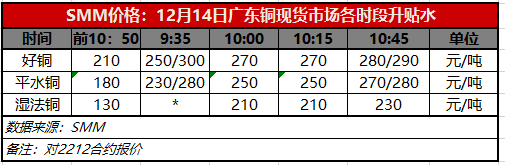12月14日广东铜现货市场各时段升贴水(第四时段10:45)【SMM价格】