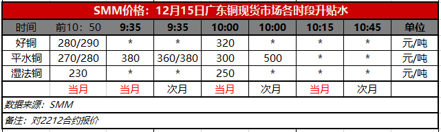 12月15日广东铜现货市场各时段升贴水(第二时段10:00)【SMM价格】