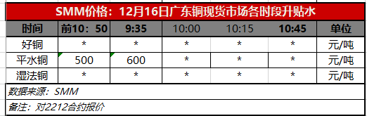 12月16日广东铜现货市场各时段升贴水(第一时段9:35)【SMM价格】