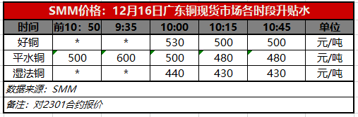 12月16日广东铜现货市场各时段升贴水(第四时段10:45)【SMM价格】