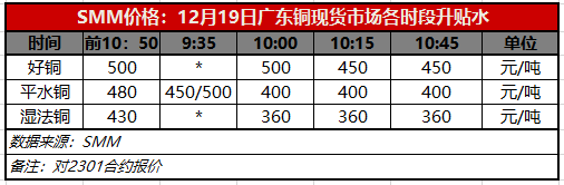 12月19日广东铜现货市场各时段升贴水(第四时段10:45)【SMM价格】