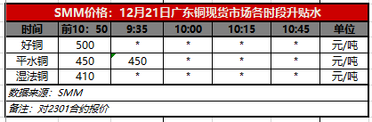 12月21日广东铜现货市场各时段升贴水(第一时段9:35)【SMM价格】