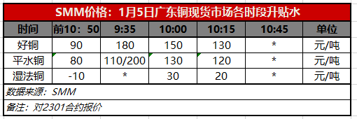 1月5日广东铜现货市场各时段升贴水(第三时段10:15)【SMM价格】