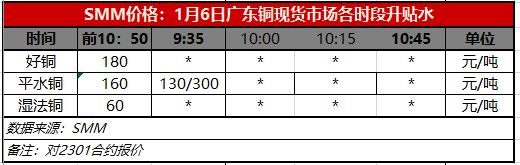 1月6日广东铜现货市场各时段升贴水(第一时段9:35)【SMM价格】