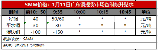 1月11日广东铜现货市场各时段升贴水(第一时段9:35)【SMM价格】