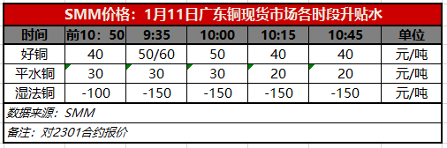1月11日广东铜现货市场各时段升贴水(第四时段10:45)【SMM价格】