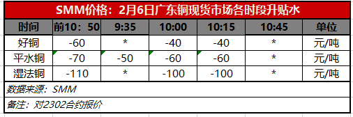 2月6日广东铜现货市场各时段升贴水(第三时段10:15)【SMM价格】