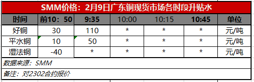 2月9日广东铜现货市场各时段升贴水(第一时段9:35)【SMM价格】