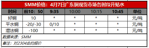 4月7日广东铜现货市场各时段升贴水(第一时段9:35)【SMM价格】