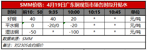 4月19日广东铜现货市场各时段升贴水(第二时段10:00)【SMM价格】