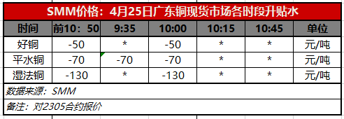 4月25日广东铜现货市场各时段升贴水(第二时段10:00)【SMM价格】