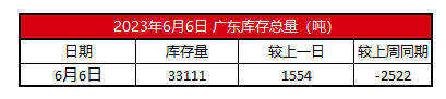 2023年6月6日广东电解铜库存【SMM数据】