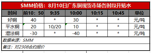 8月10日广东铜现货市场各时段升贴水(第二时段10:00)【SMM价格】