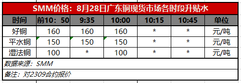 8月28日广东铜现货市场各时段升贴水(第二时段10:00)【SMM价格】