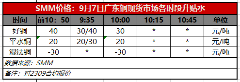 9月7日广东铜现货市场各时段升贴水(第二时段10:00)【SMM价格】