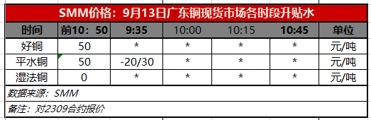 9月13日广东铜现货市场各时段升贴水(第一时段9:35)【SMM价格】