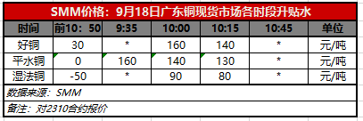 9月18日广东铜现货市场各时段升贴水(第三时段10:15)【SMM价格】
