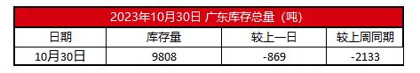 2023年10月30日广东电解铜库存【SMM数据】