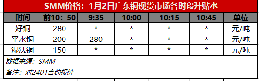 1月2日广东铜现货市场各时段升贴水(第一时段9:30)【SMM价格】
