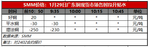 1月29日广东铜现货市场各时段升贴水(第一时段9:30)【SMM价格】