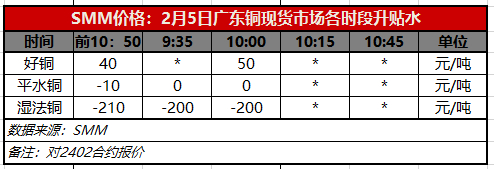2月5日广东铜现货市场各时段升贴水(第二时段10:00)【SMM价格】