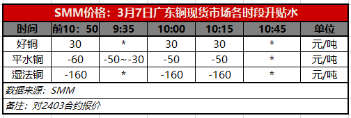 3月7日广东铜现货市场各时段升贴水(第三时段10:15)【SMM价格】