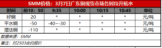 3月7日广东铜现货市场各时段升贴水(第一时段9:30)【SMM价格】