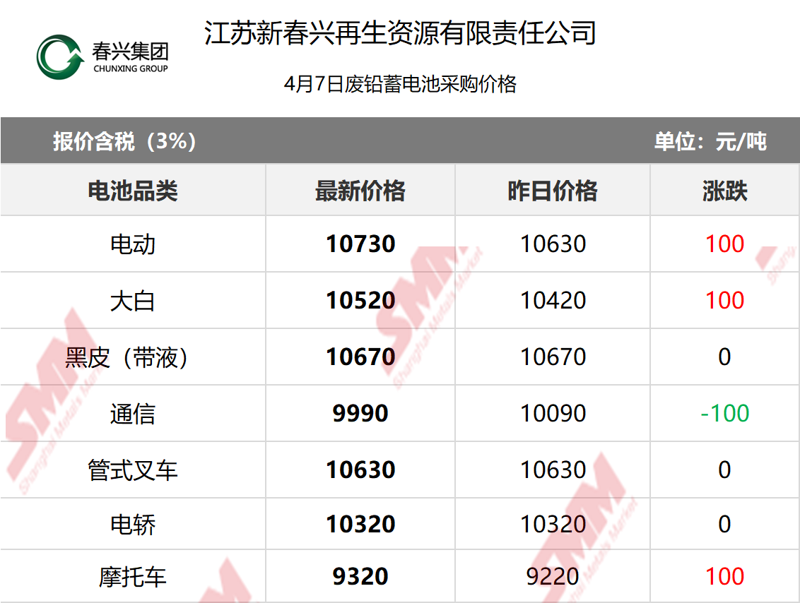 4月7日江苏新春兴 废电瓶采购报价