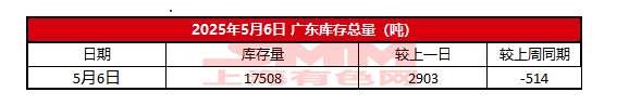 2025年5月6日广东电解铜库存【SMM数据】