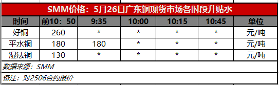 5月26日广东铜现货市场各时段升贴水(第一时段9:30)【SMM价格】