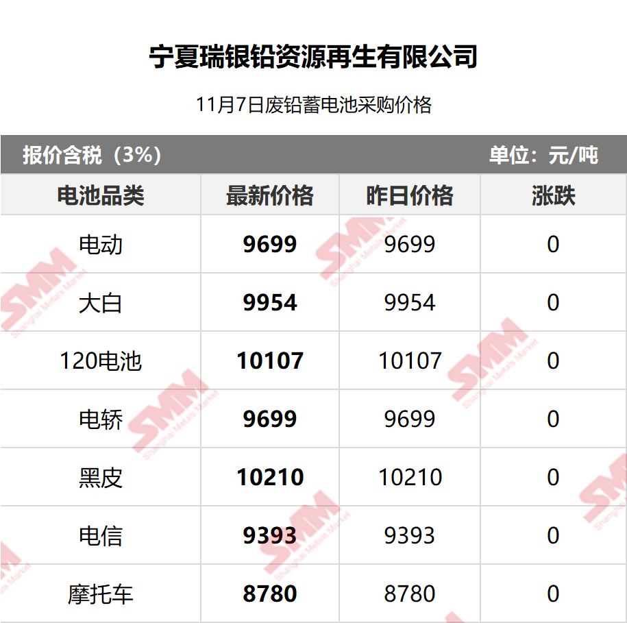 SMM 2025/12/3 国内知名再生铅企业废电瓶采购报价